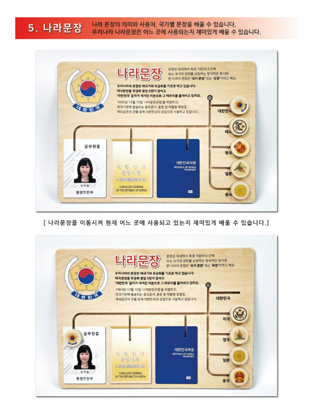 행정안전부 지정 청소년 필수교육 대한민국 5대 상징물을 놀이교구로 제작하여