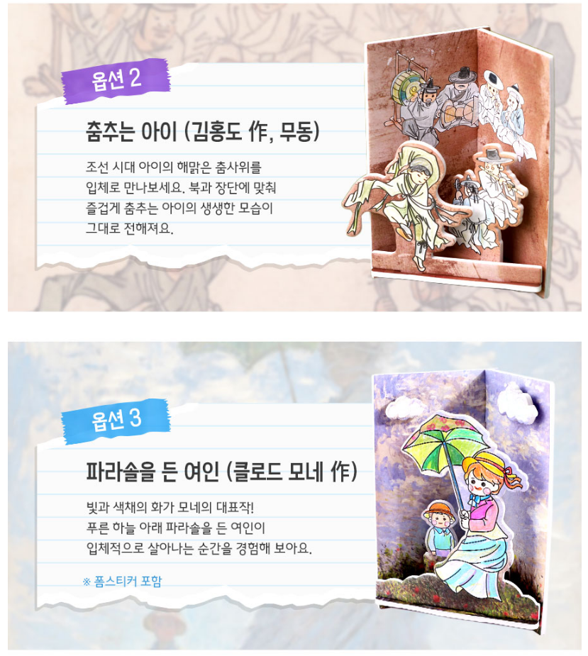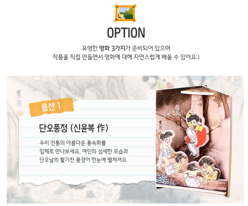 옵션 : 1. 단오풍정 / 2. 춤추는 아이 / 3. 파라솔을 든 여인 (선택)